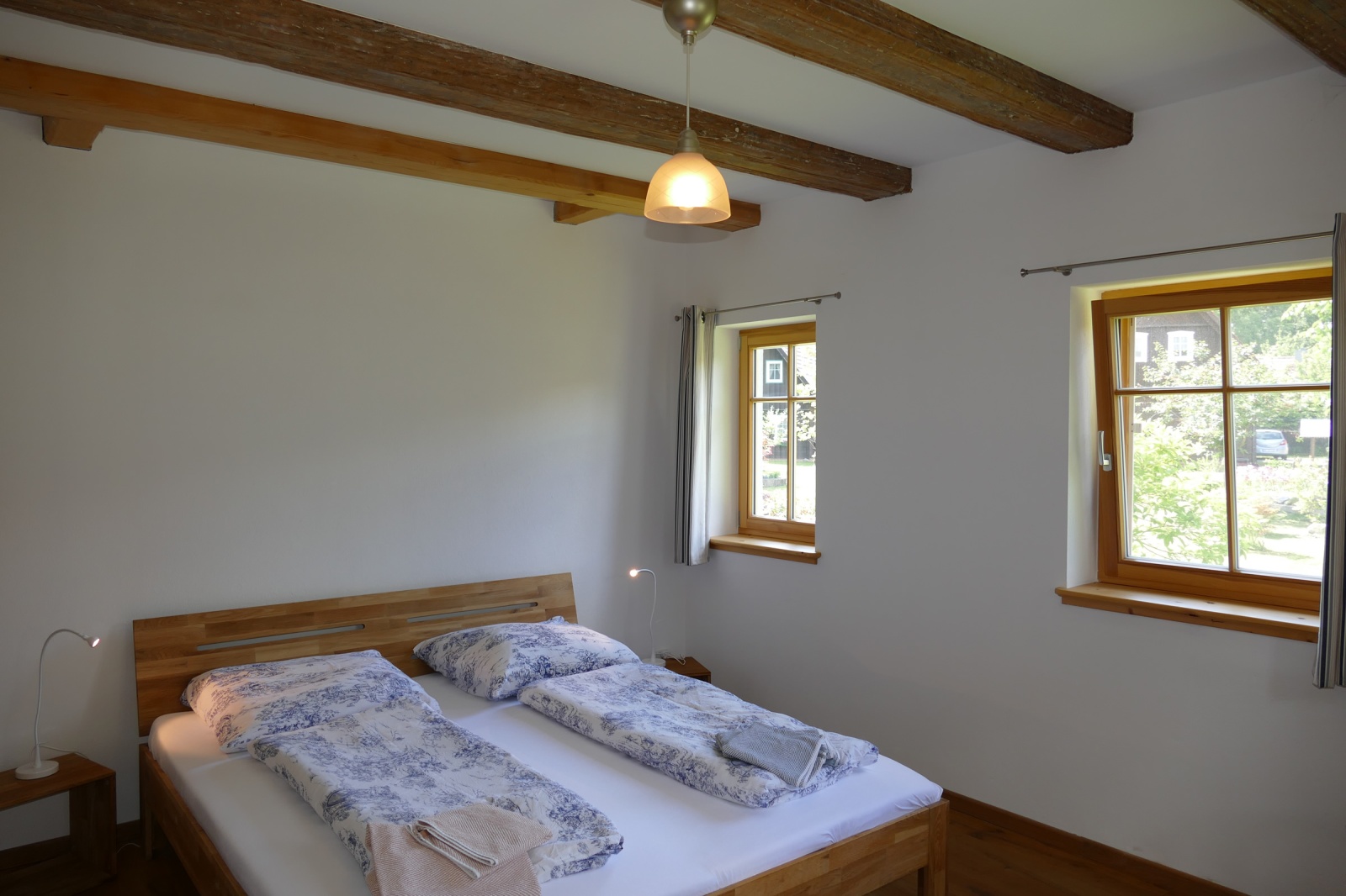 The listed building was constructed in the 18th century. Timber from that time gives the house its unique and warm character. Also we were very delicate about light rooms and underfloor heating. The windows in the sleeping and sitting rooms have mosquito nettings attached. All furniture has been carefully chosen.
