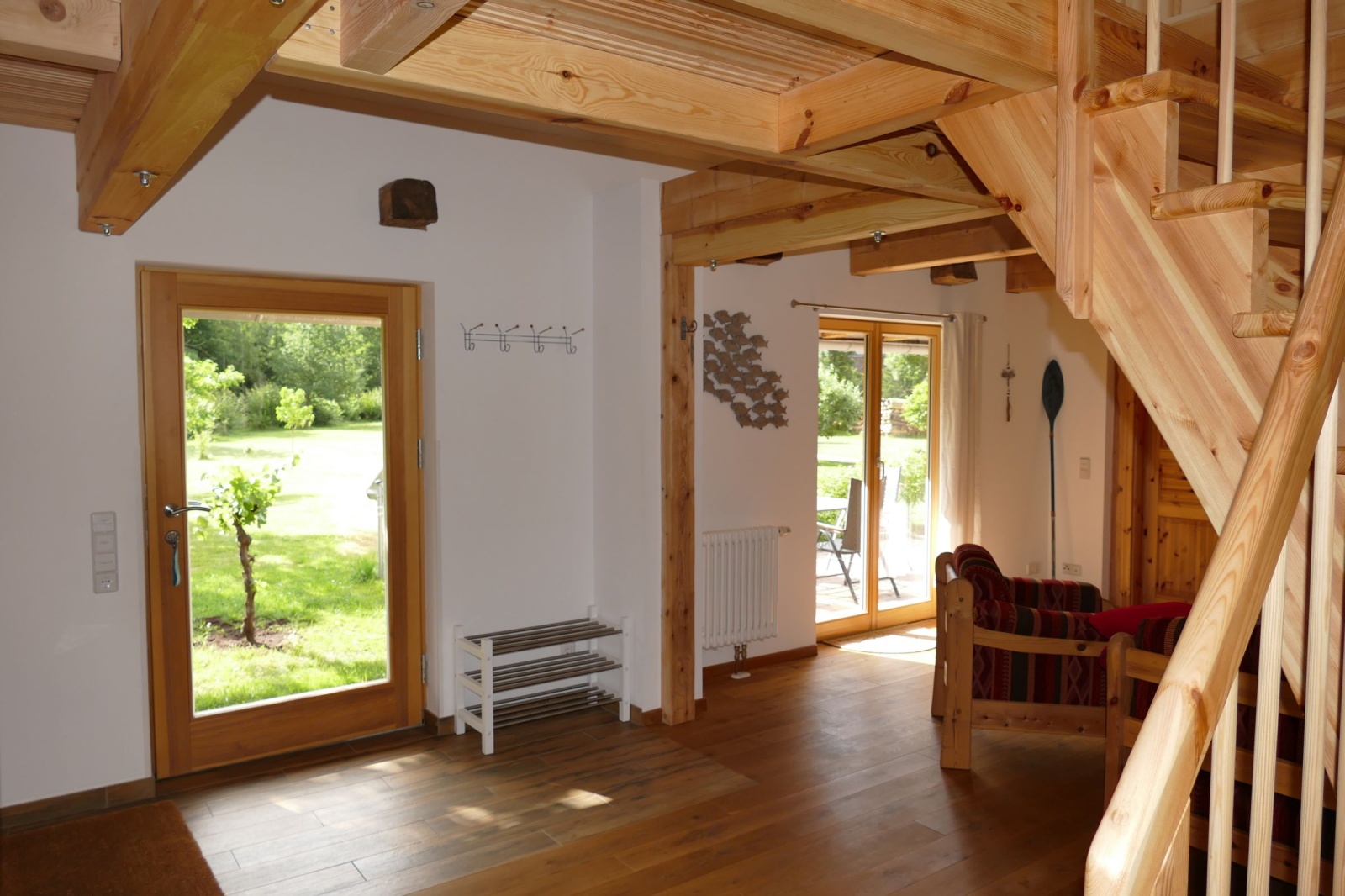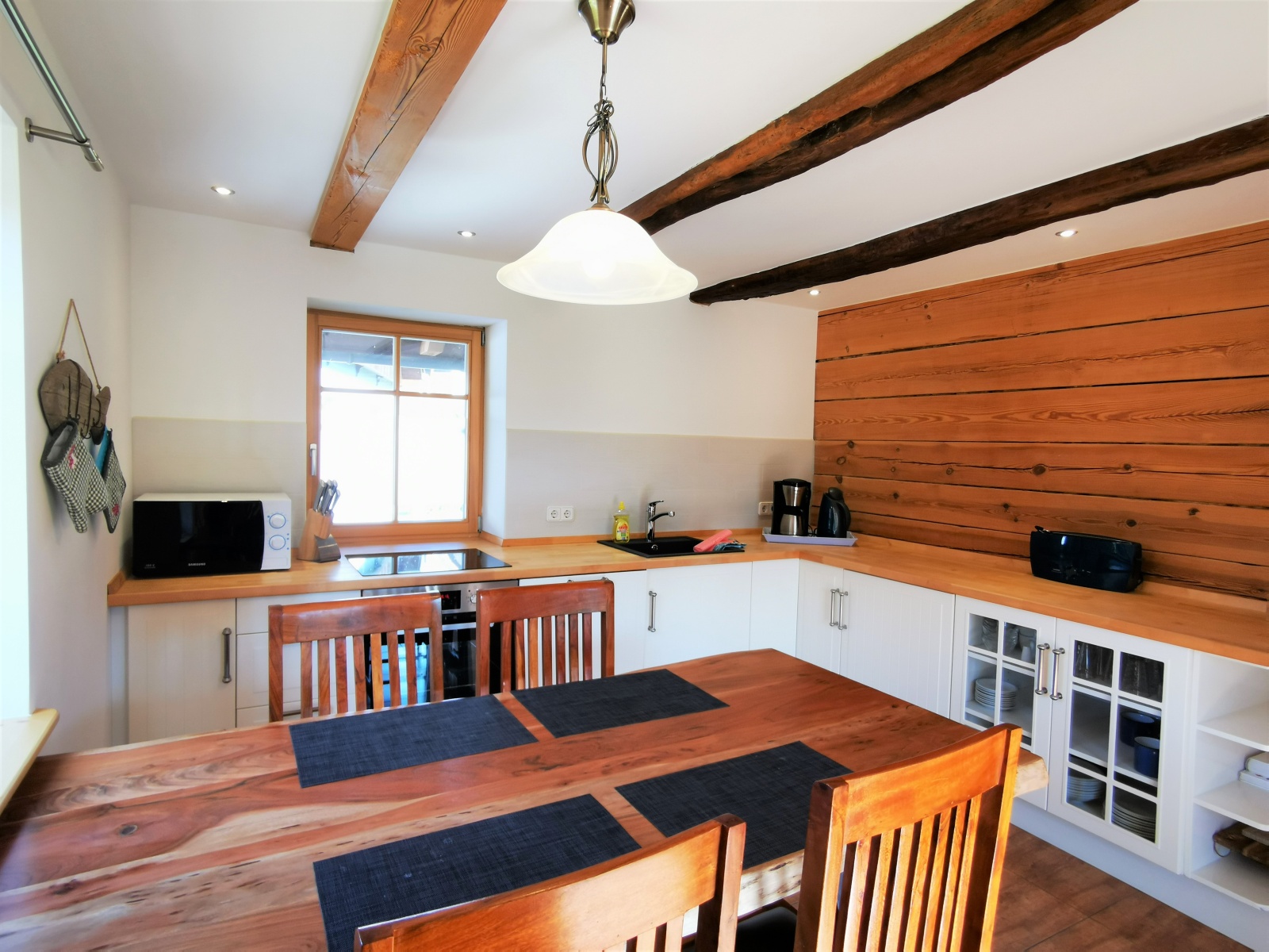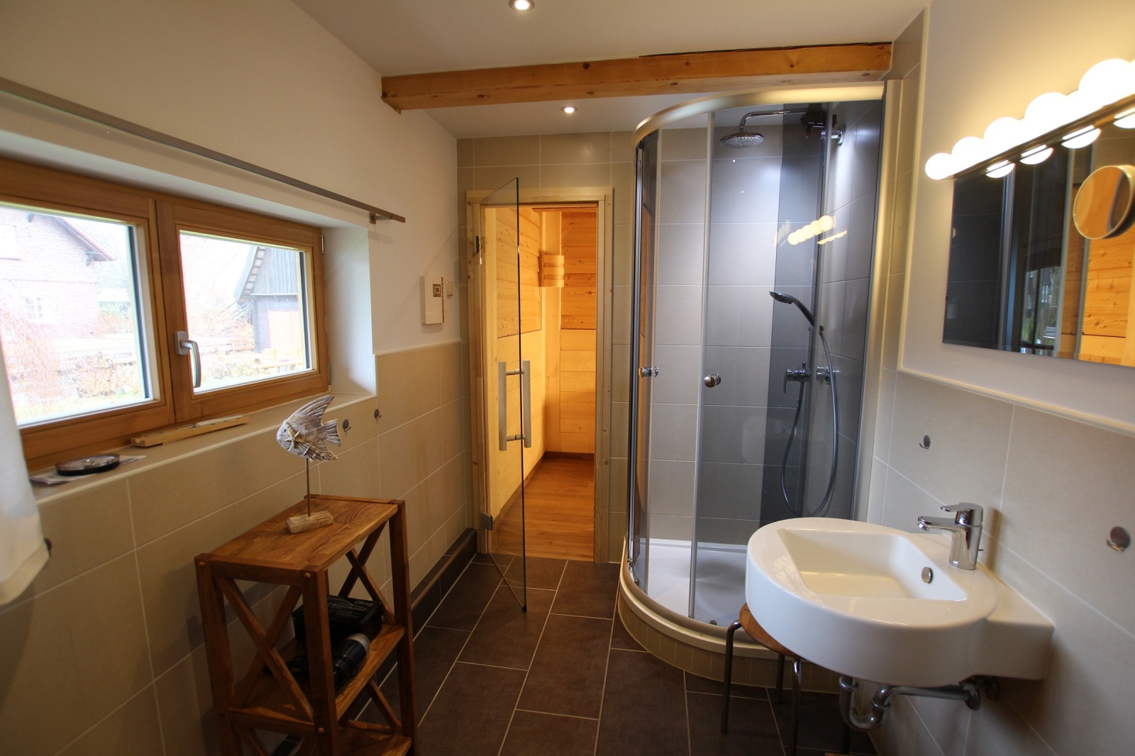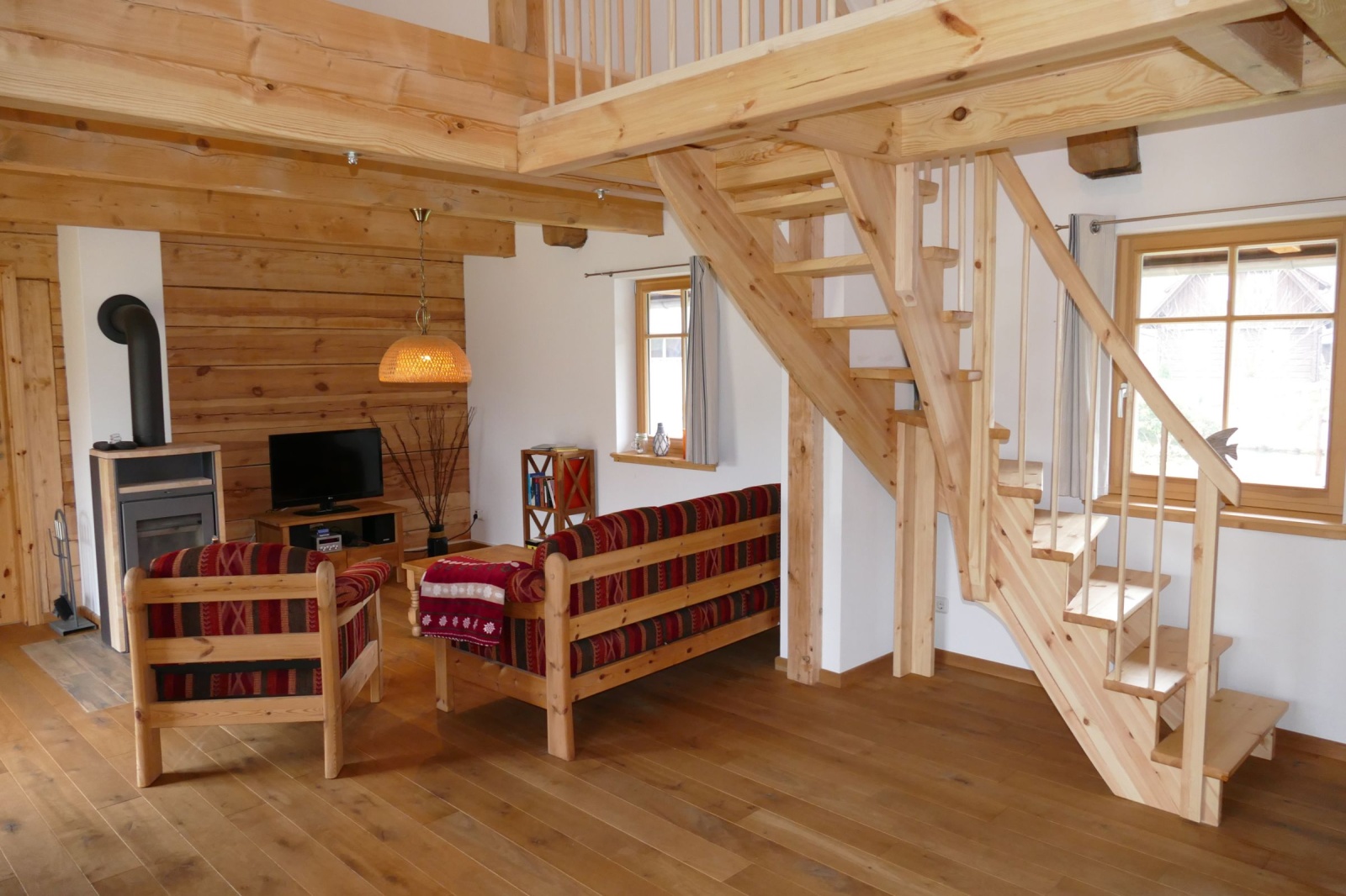 Die Scheune verfügt über einen großzügigen Wohnbereich, Küche, Bad, ein kleines Schlafzimmer sowie einen offenen Schlafboden im Dachgeschoss. Zur Ausstattung gehören Kaminofen, Sauna, Fußbodenheizung, OLED-TV, WLAN (eingeschränkt möglich), sowie eine voll ausgestattete Küche.